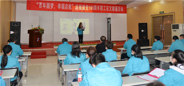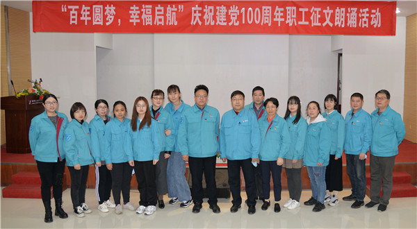 为庆祝中国共产党建党100周年,讴歌中国共产党百年光辉历程及带领中国人民取得的辉煌成就,加强爱国主义教育,弘扬民族精神。根据《际华三五零六公司党史教育实施方案》部署安排,3月26日下午2点,在综合楼一楼多功能厅,公司工会组织开展了“百年圆梦,幸福启航”庆祝建党100周年职工征文朗诵活动。