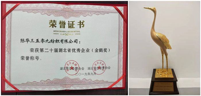 近日,际华3509公司荣获第十二届湖北省优秀企业(金鹤奖)称号。